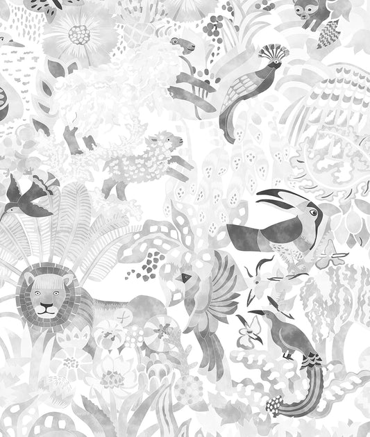 Pintura Animales en la Jungla - Blanco y Negro