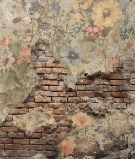 Muro Ladrillos Rústico con Flores II