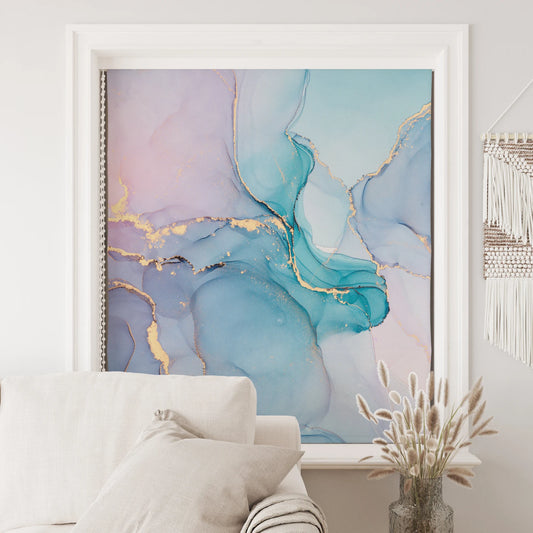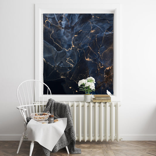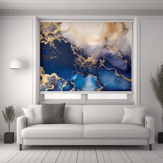 Persiana Enrollable Impresa Marmoleado Azul y Blanco