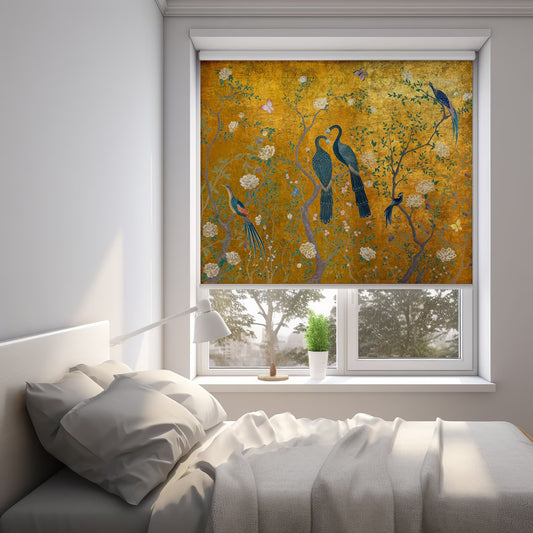 Persiana Enrollable Impresa Faisanes y Fondo Mostaza