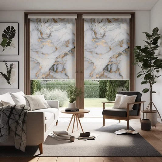 Persiana Enrollable Impresa Estilo Mármol Gris Blanco