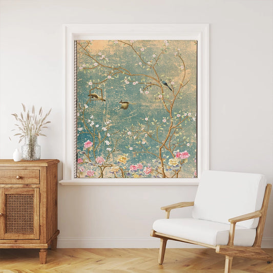 Persiana Enrollable Impresa Arboles y Aves Estilo Japonés