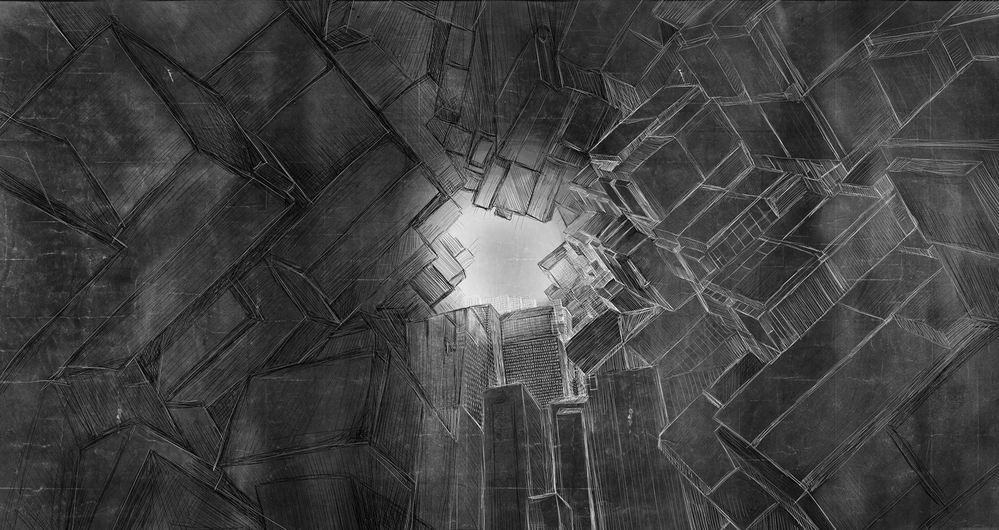 Esta puede ser la última imagen capturada de esta magnífica fachada interior: las paredes y el piso casi se derrumbaron cuando se tomó esta fotografía. Las ventanas de tamaño real ofrecen luz y una vista donde antes solo había una pared simple.