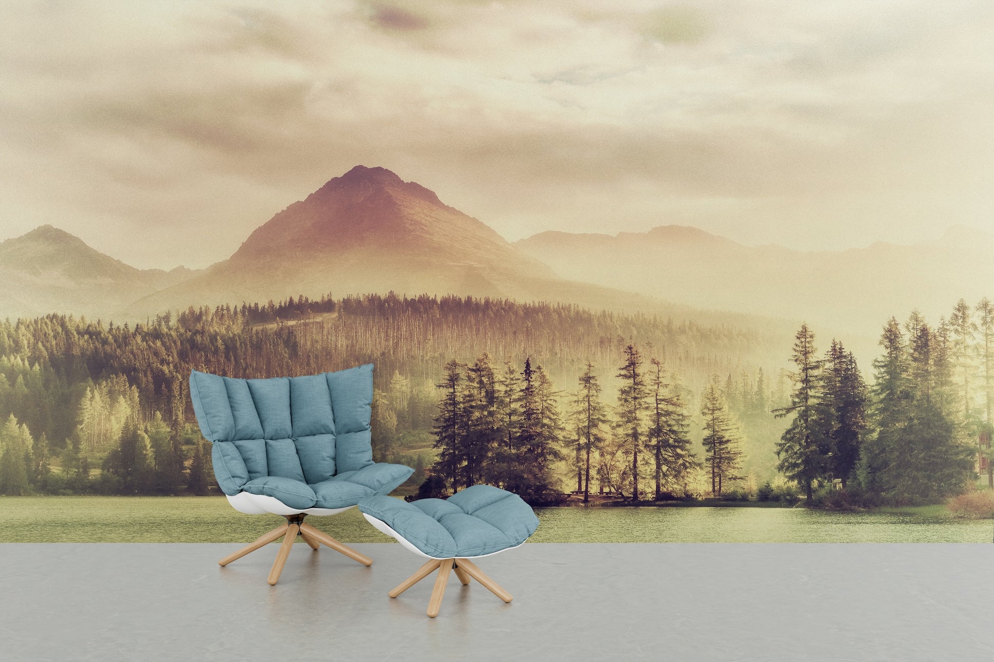 Lago, Bosque y Montaña Retro