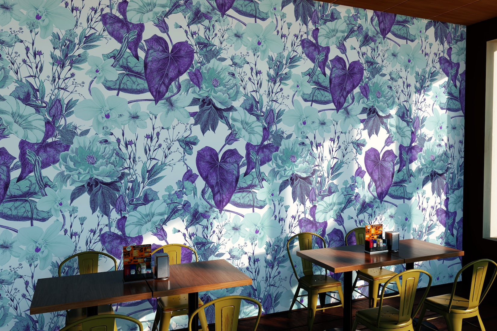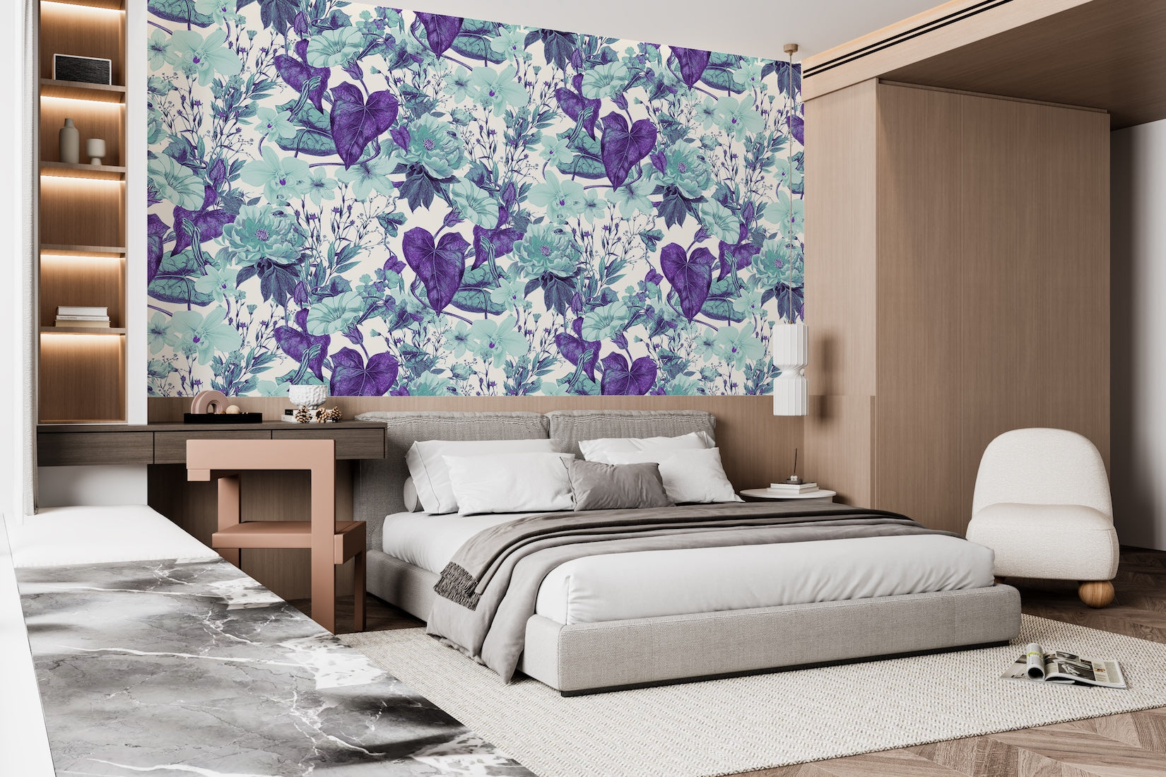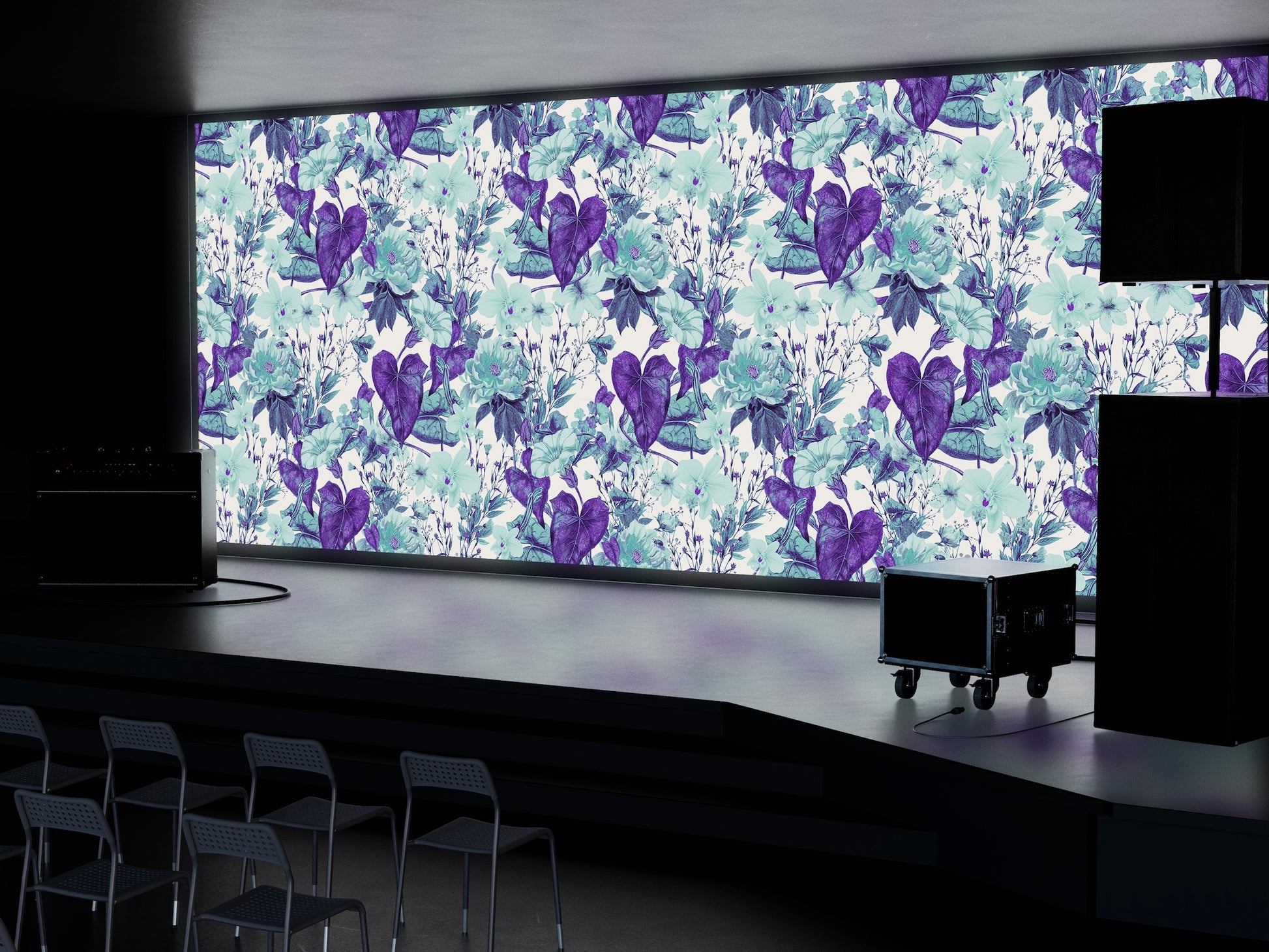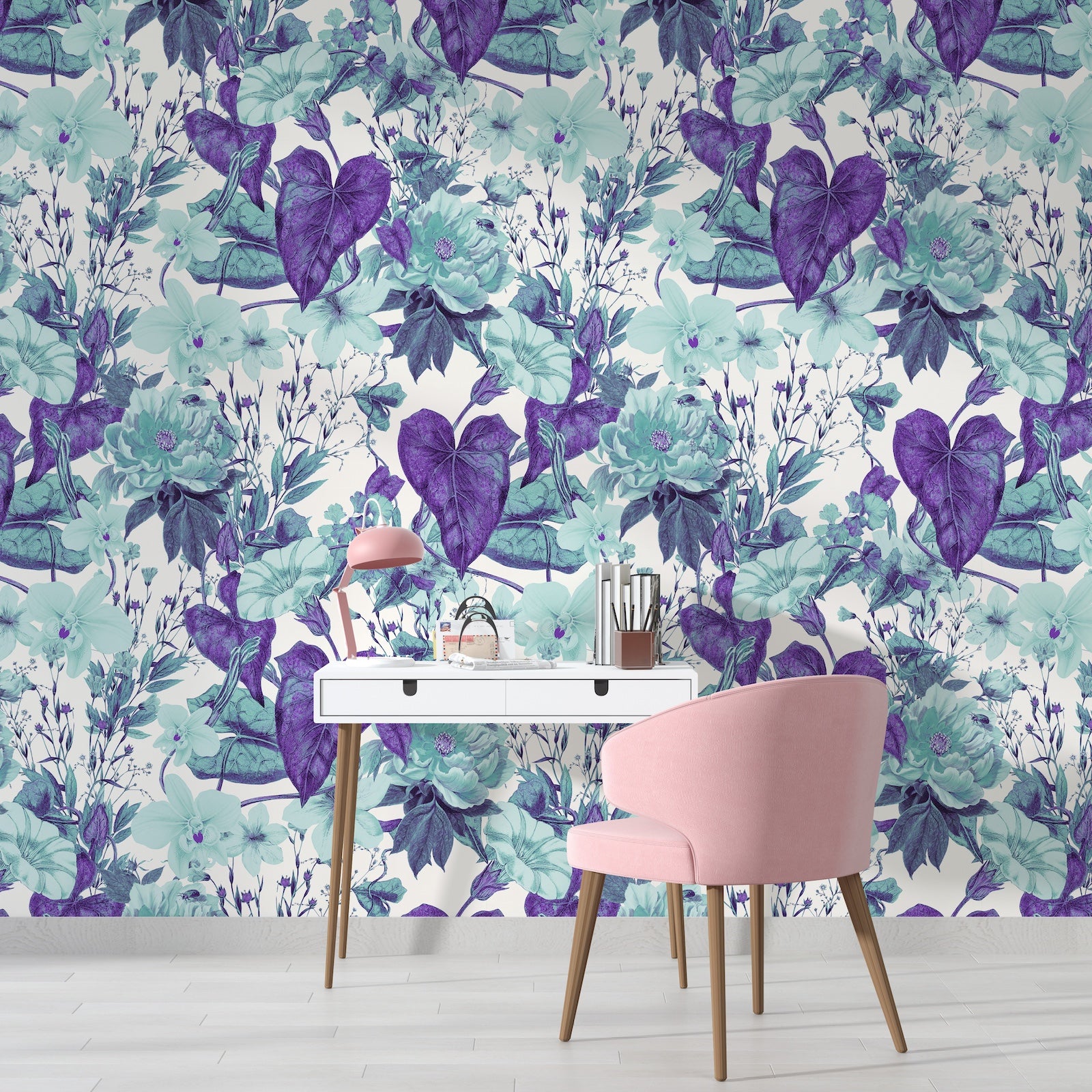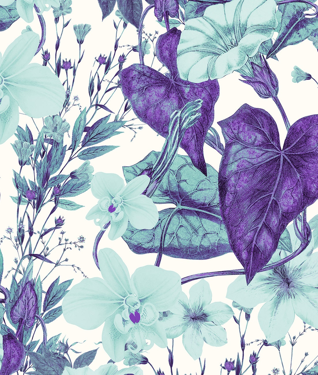 Patrón de Flores Turquesa y Plantas Moradas